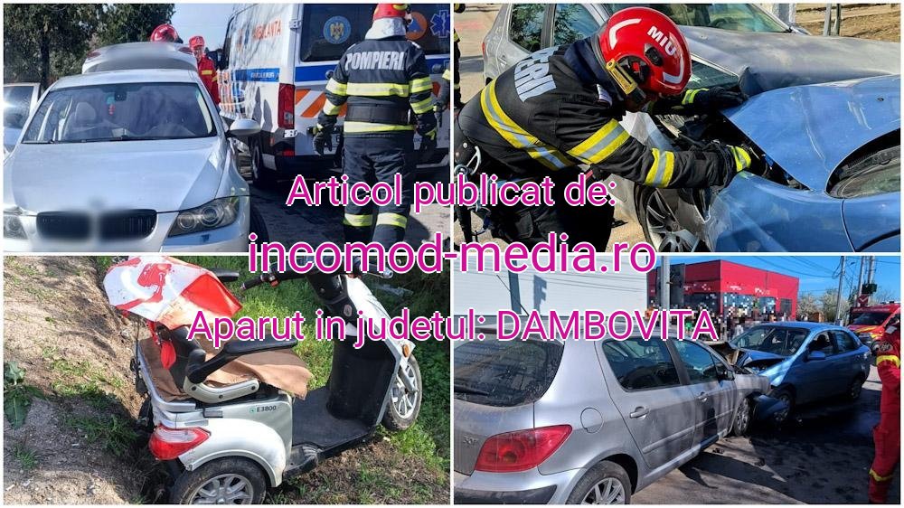 Trei autoturisme și o tricicletă electrică au fost implicate, în această după-amiază, într-un accident rutier în comuna Izvoarele – județul Giurgiu, sat Chiriacu.