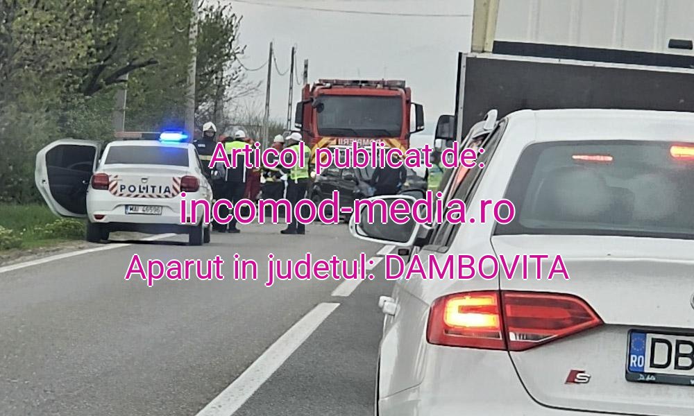 Accident rutier, în această după-amiază, pe DN 72, la ieșire din Săcuieni, județul Dâmbovița, spre Târgoviște.